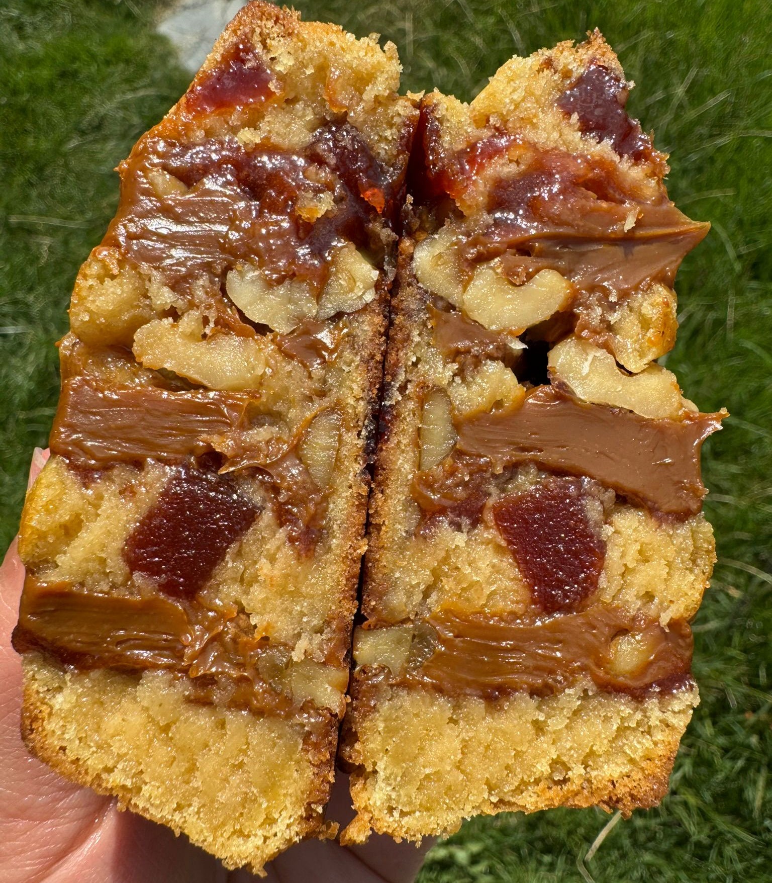 Experience the perfect balance of flavors with our Guava Dulce de Leche Swirl. A soft vanilla cookie swirled with rich, creamy dulce de leche, complemented by the sweet, tropical brightness of guava and the satisfying crunch of toasted walnuts. This delicious combination creates a uniquely indulgent treat you'll want to savor again and again.